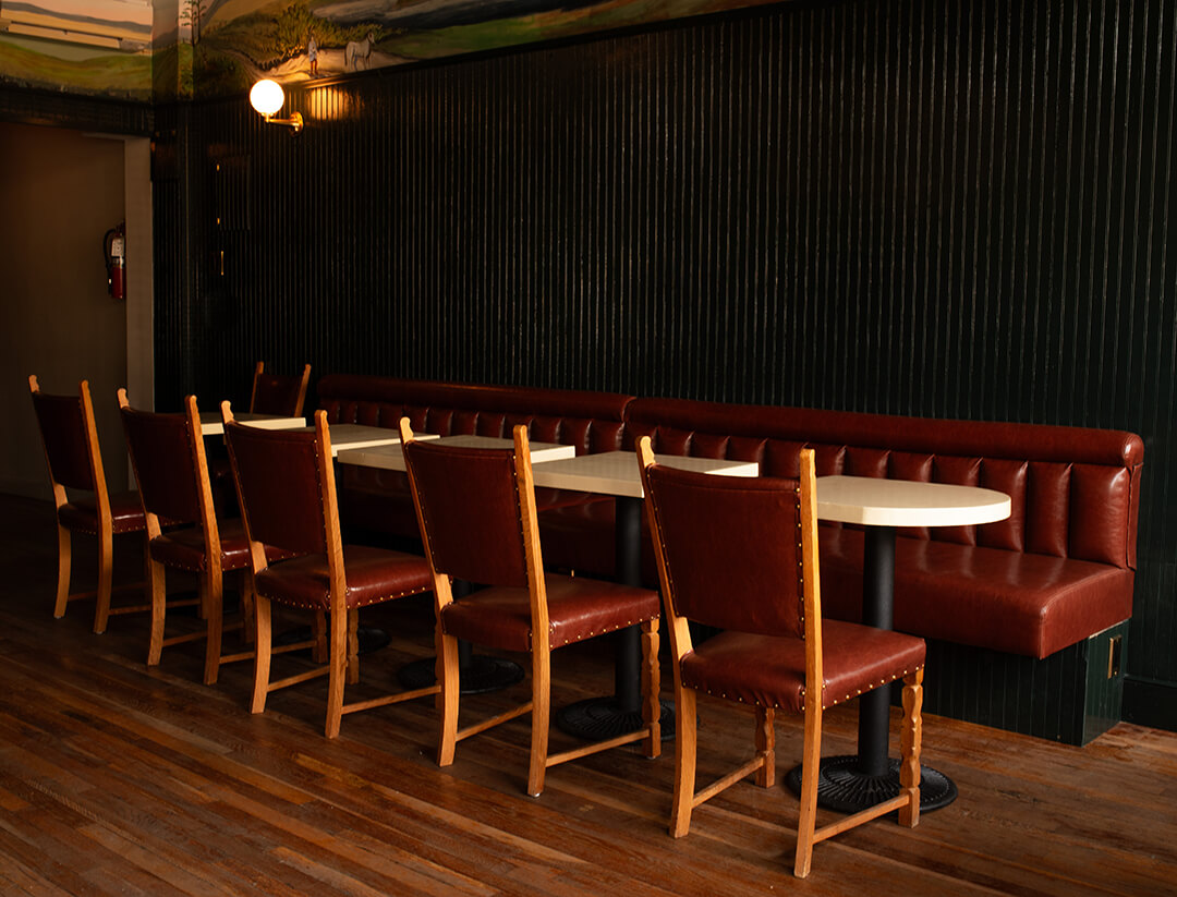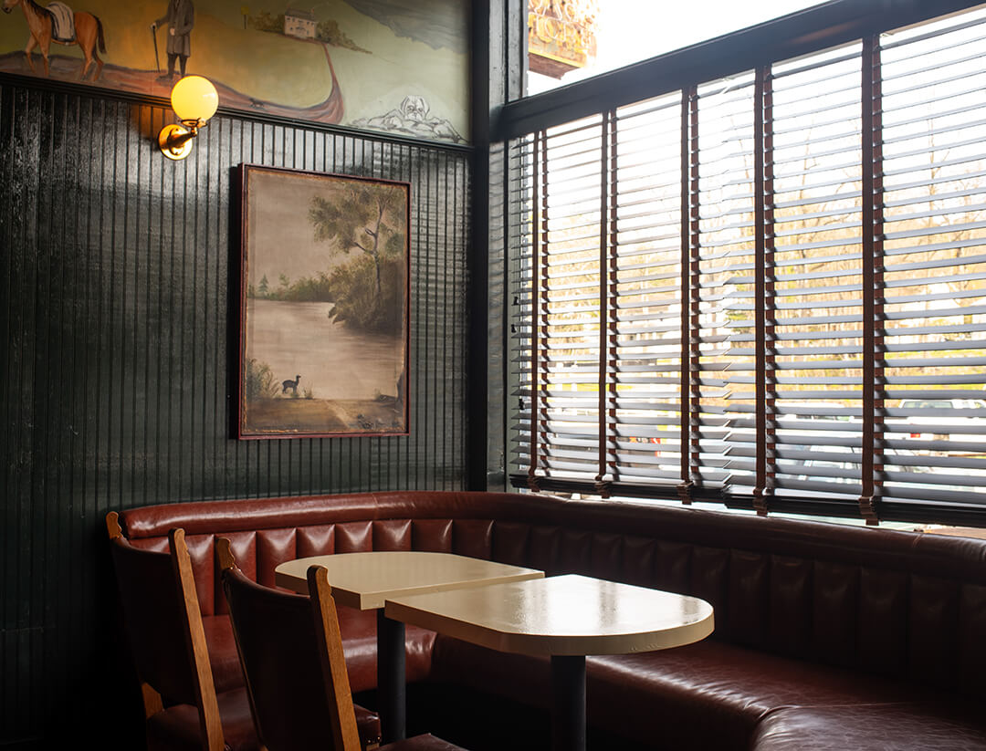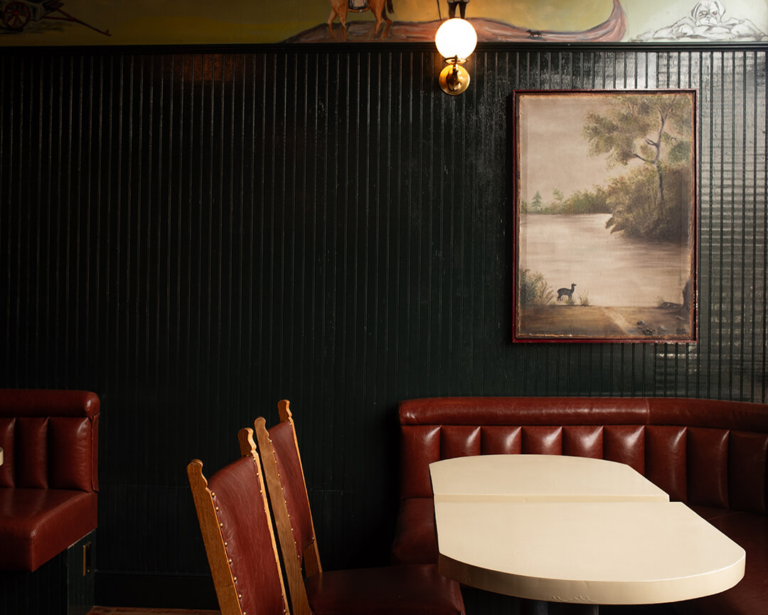 Starting with a blank canvas, we drew inspiration from iconic establishments like The Odeon in Tribeca and the grand Adirondack resorts of the early 19th century. Through thoughtful material selection and multiple layers of deep forest green paint, we crafted an atmosphere so authentic that patrons often mistake it for a decades-old establishment.