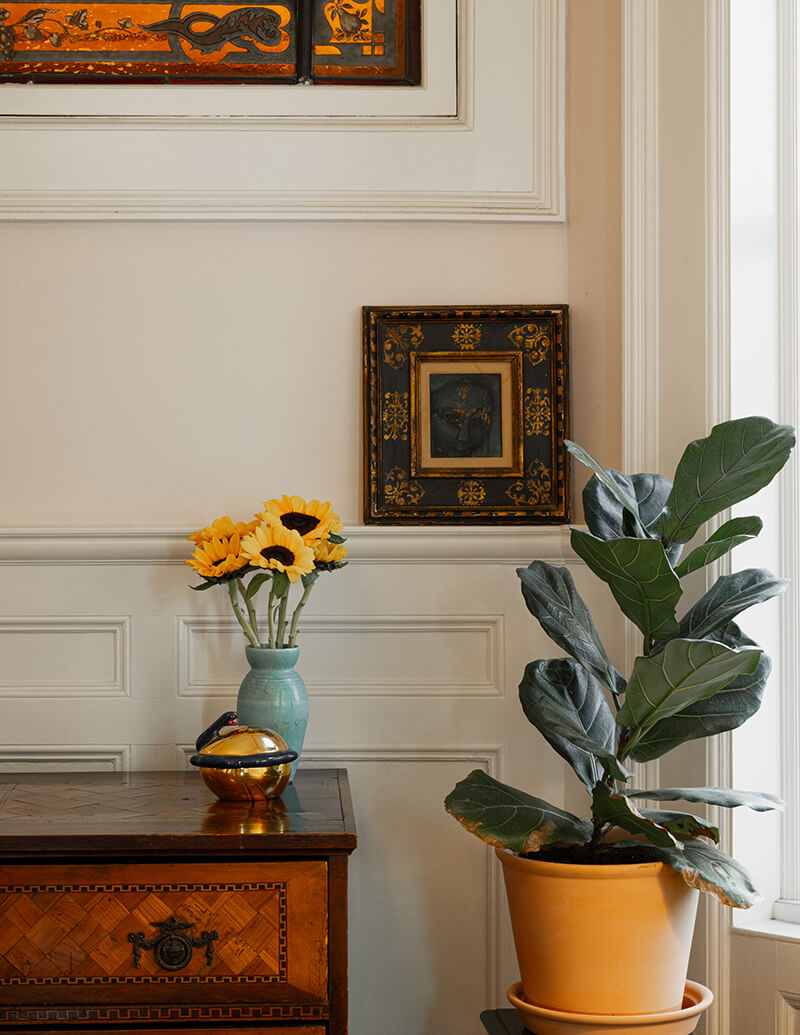 In this historic Brooklyn home, we were tasked with creating an elegant yet livable environment for longtime clients who had amassed a remarkable art collection. The project presented an exciting opportunity to showcase their diverse pieces while maintaining a warm, inviting atmosphere.